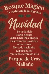 El Bosque Mágico: la ilusión de la Navidad convertirá al parque de Cros de Maliaño en un gran bosque navideño único en Cantabria en donde se podrá encontrar una gran pista de hielo cubierta para pequeños y adultos, una Aldea Navideña Europea en donde los más pequeños podrán conocer las costumbres de los países de Europa, atracciones para todos los públicos, una zona de restauración con gastronomía típica navideña y, como novedad en Cantabria, una noria gigante única en España que hará las delicias de todos los visitantes, además de actividades, conciertos, y espectáculos que harán del parque de Cros una experiencia navideña única.